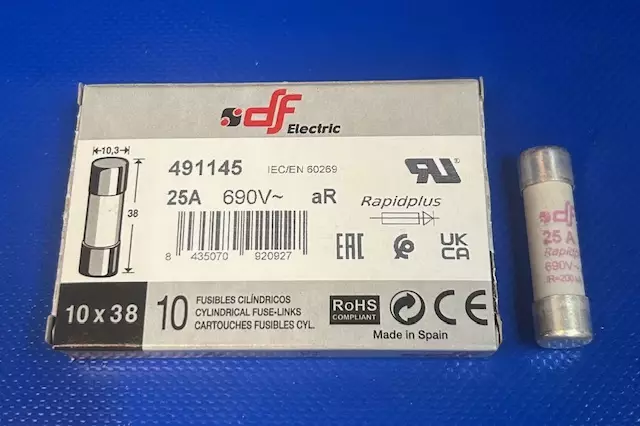 10*38 mm 25A 690Vac 400Vdc aR 200kA Putkivaroke Erikoisnopea keraaminen putkisulake