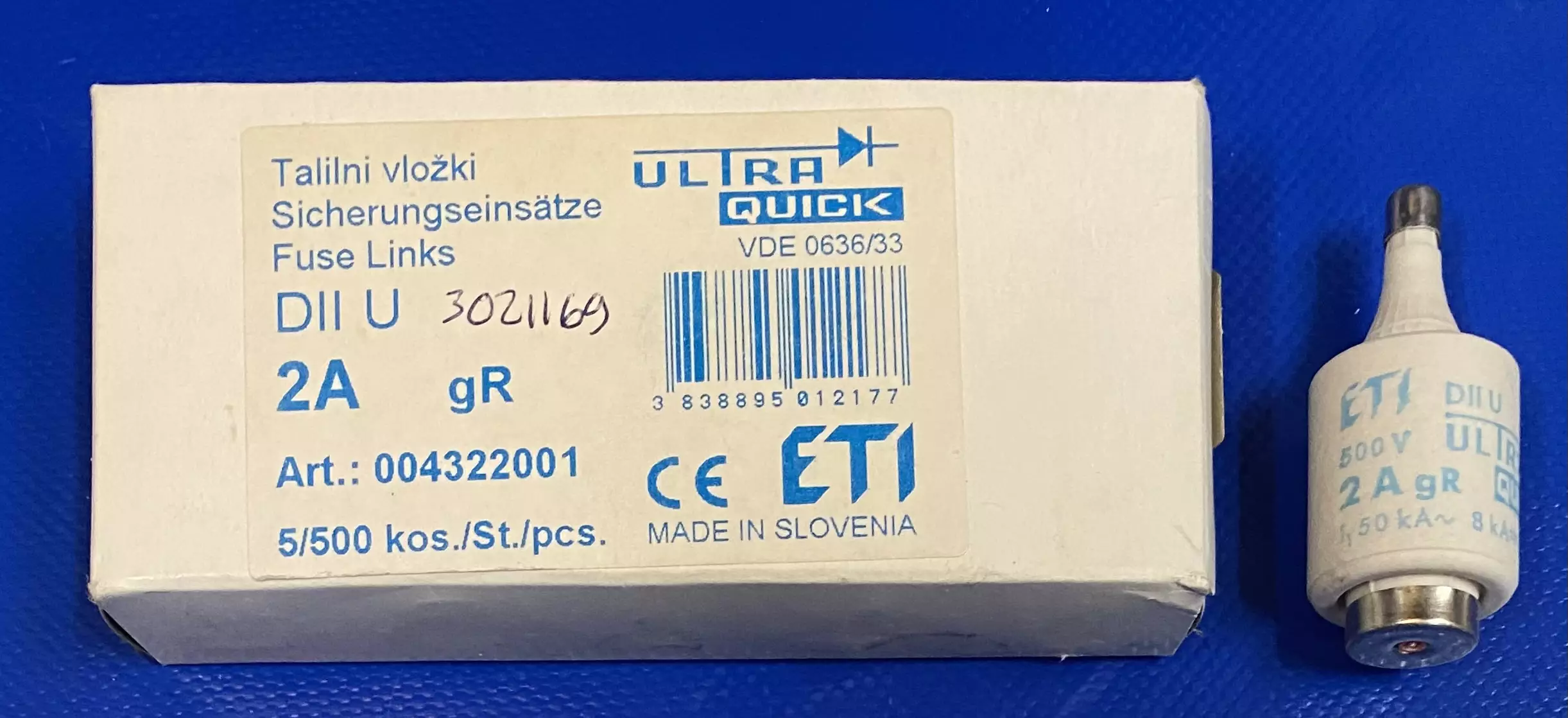 Erikoisnopea tulppasulake DII 2A 500V gR