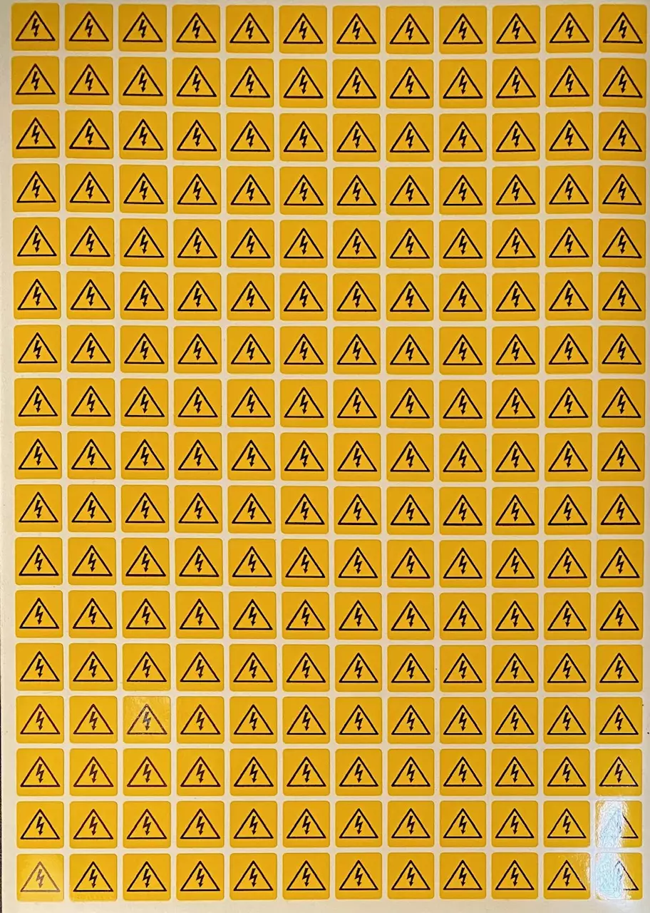 Tarra jännite / vaara pieni 15*15mm arkilla 204 kpl keltainen tarra musta teksti
