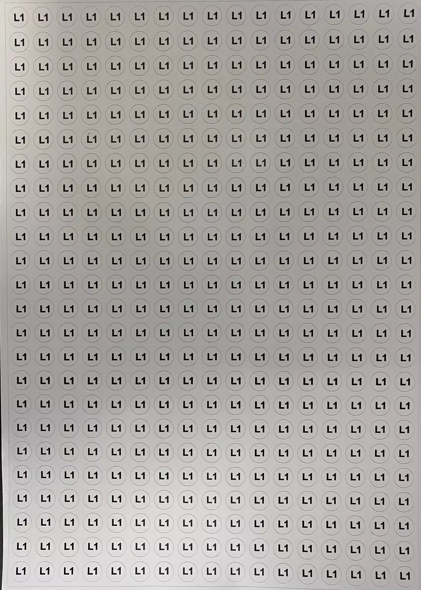 Tarra L1 10mm valk./musta teksti 408 kpl/arkki