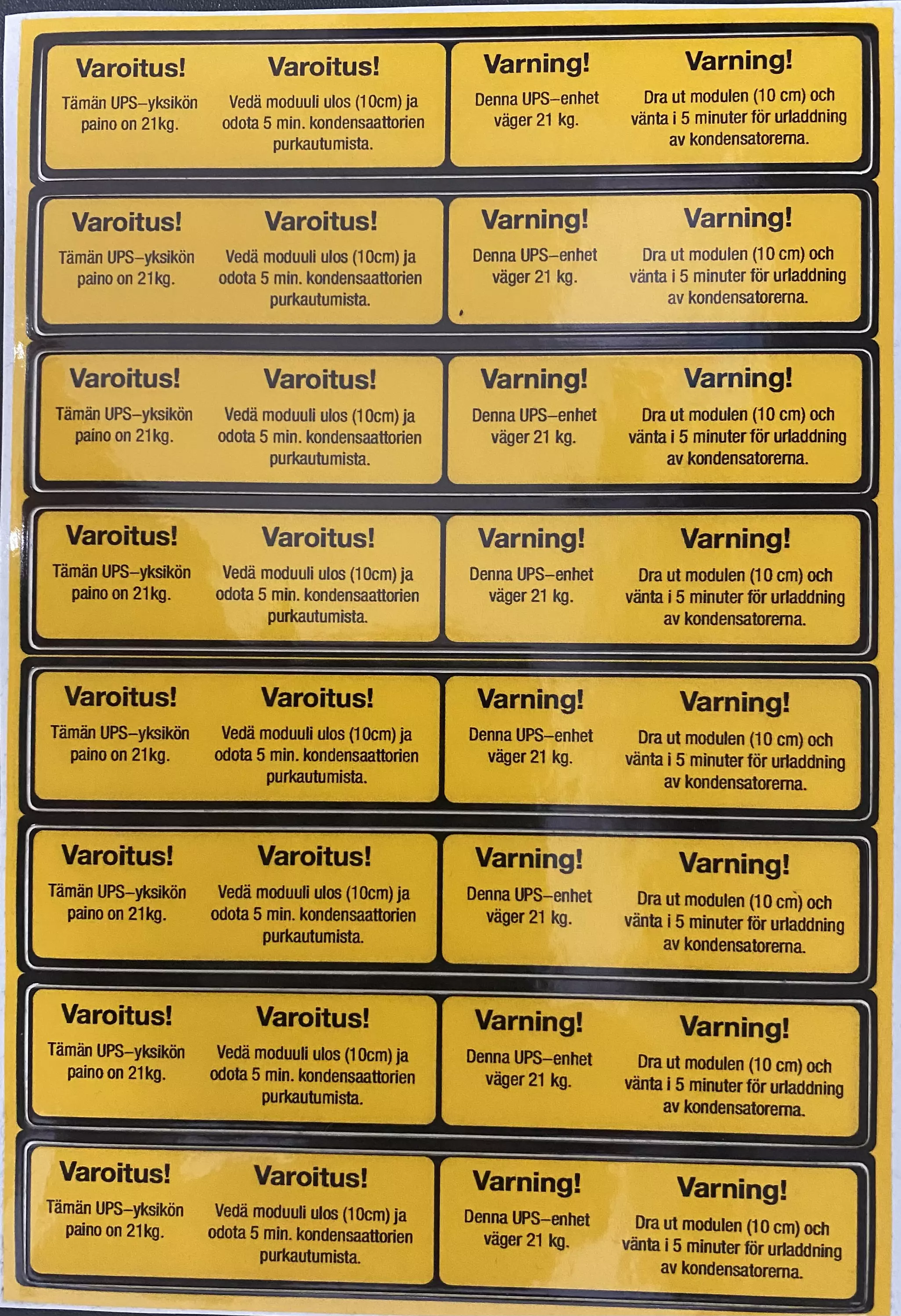 Tarra Varoitus UPS yksikön paino 21kg
