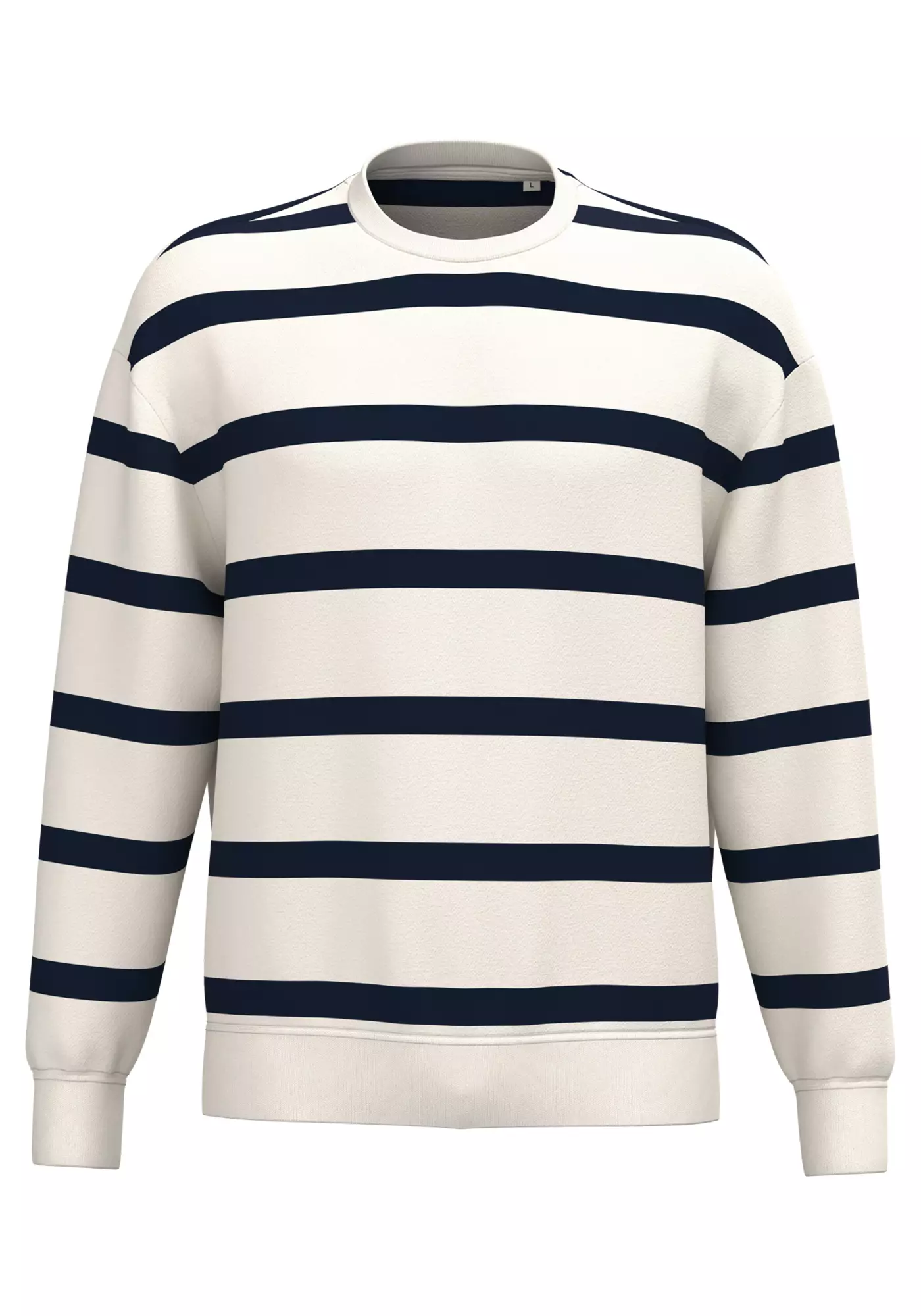 Ekologinen raidallinen collegepaita yhdistää rennon tyylin ja miellyttävän käyttötuntuman.